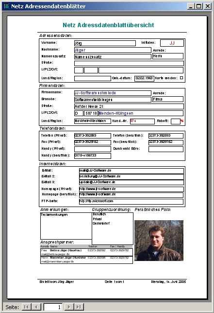 Eine sehr umfangreiche Berichtsverwaltung rundet die Adressverwaltung in jeder