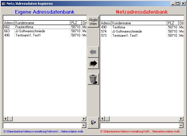 die eigenen Adressdaten wurde der Programmcode optimiert. Ferner kann eine Abgleichfunktion aufgerufen werde die die beiden Adressbestände (Netz und eigene) vergleicht. (Für diesen Beitrag bedanke ich mich rechtherzlich bei Herrn Axel Jahn) |