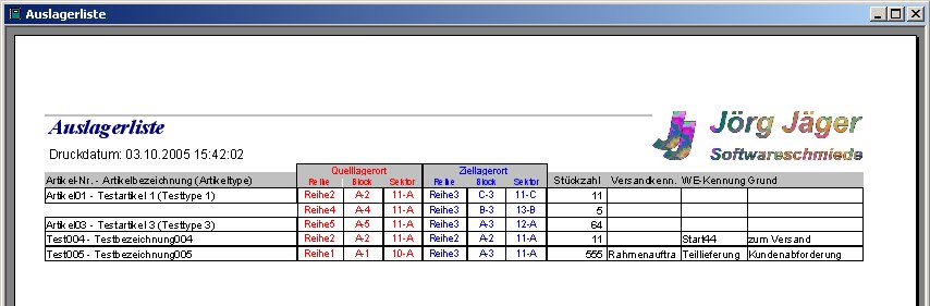 6. | Über die Lagerortart kann jetzt eine Ein- und Auslagerliste erzeugt werden |