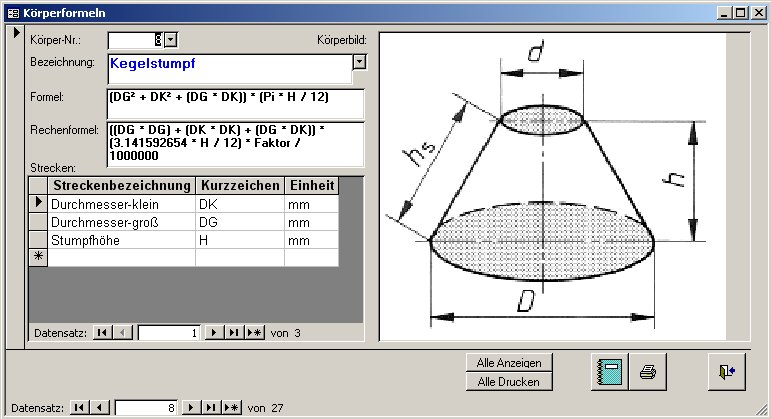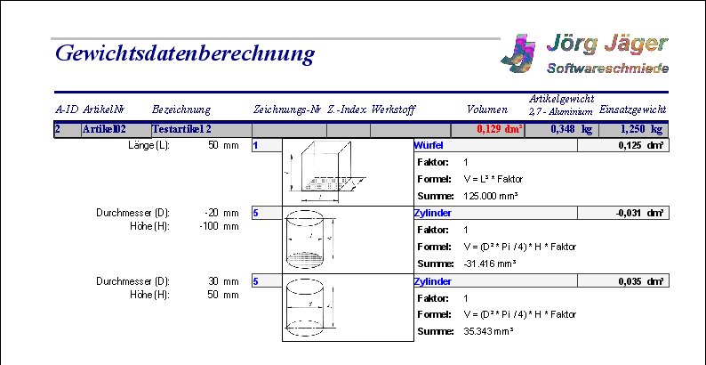 GEWICHTSBERECHNUNG ist für jegliche Art der Körperberechnung geeignet.