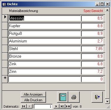 GEWICHTSBERECHNUNG ist eine komfortable MS-Access-Datenbankanwendung