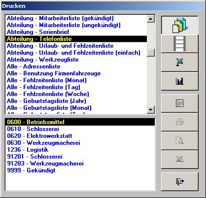 z.B.: Stammdatenerfassung mit Abteilungszuordnung, Urlaubs-, Fehlzeiten-,