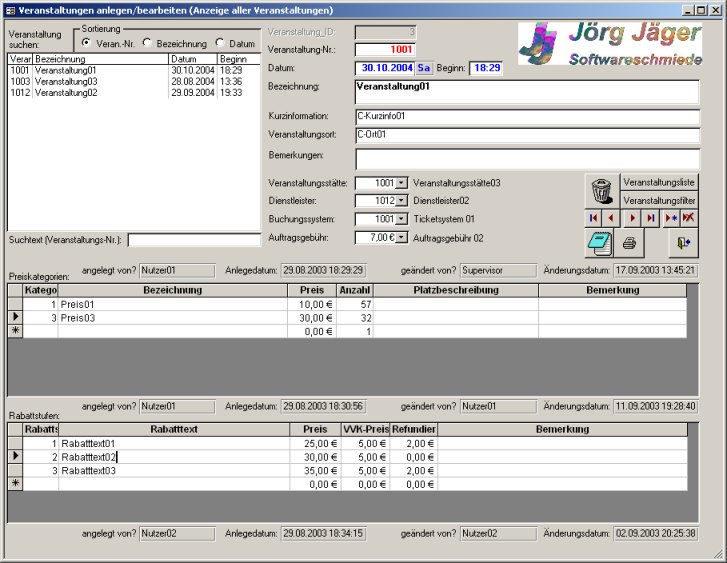 1. | Anlegen von Veranstaltungen mit Preiskategorien und Rabattstufen |